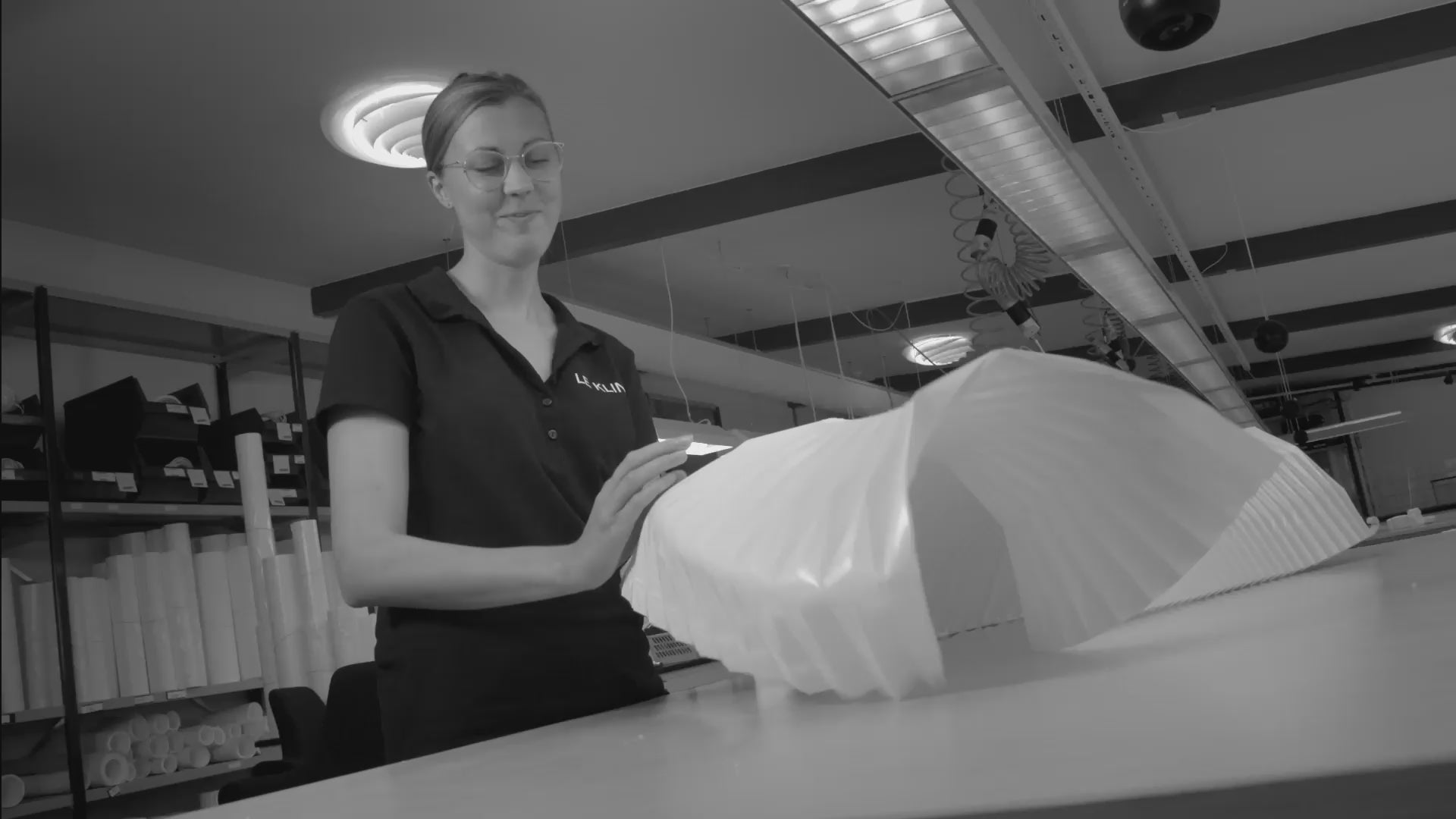 Anna also helps to prepare the many lampshade sheets for sewing before they are made and then sent out for quality checking. Her afternoons in the pleating studio are mostly spent producing her favourite lamp, the popular Lamella designs Anna is very proud at becoming a qualified Pleating Technician here at Le Klint.