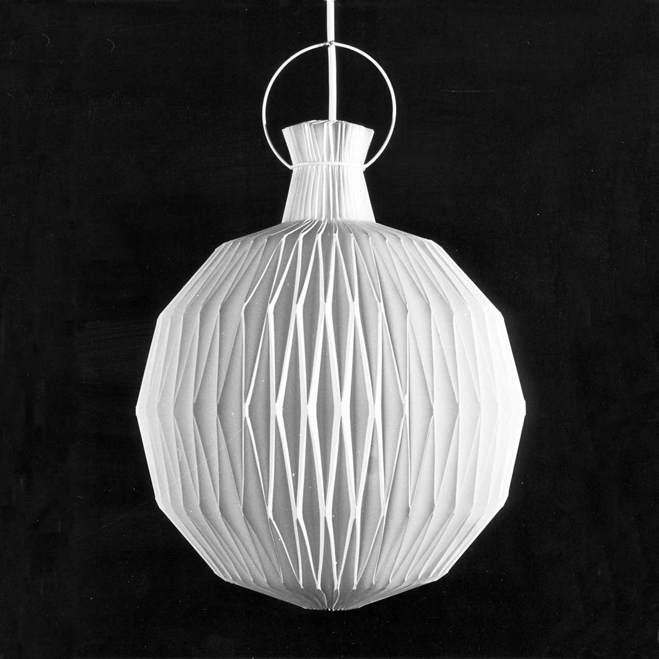 The lamp is fascinating due to its unification of craftmanship, technique and design. It is almost unbelievable that a rectangular piece of paper can be folded into a three dimensional ball with such a beautiful and complicated structure. The lamp harks all the way back to the Chinese paper lamps, but is still its own thing by virtue of the use of the cross-pleating.