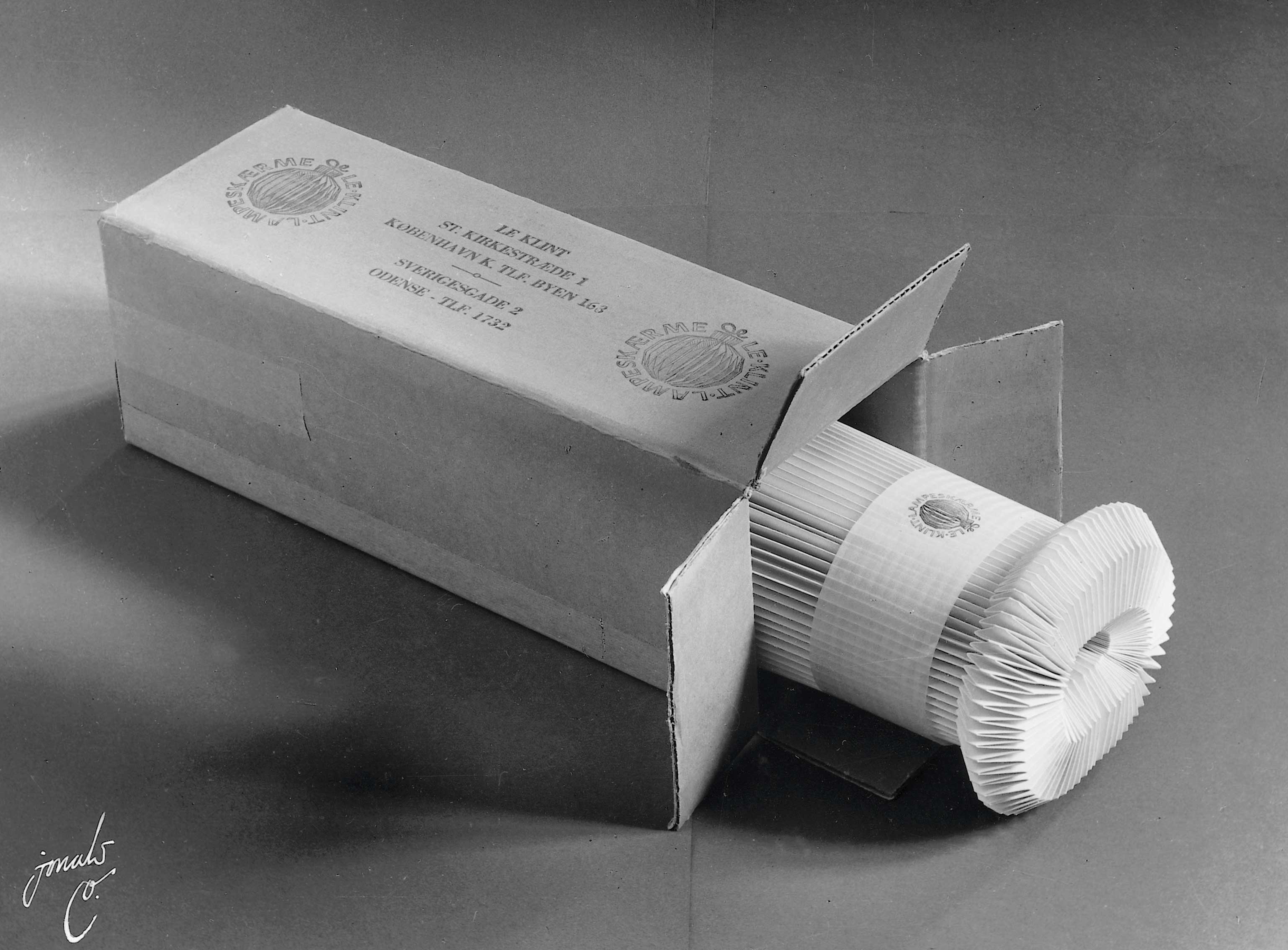 While the older brother Tage Klint primarily took care of the development of the technical principles behind the lampshades, Kaare Klint's speciality was the artistic work, such as printed matters, exhibitions and not least lamps and solid geometric constructions, which his pendant, the Lantern, is a good example of. He also designed the company logo, which was used in the first catalogue in October 1943.