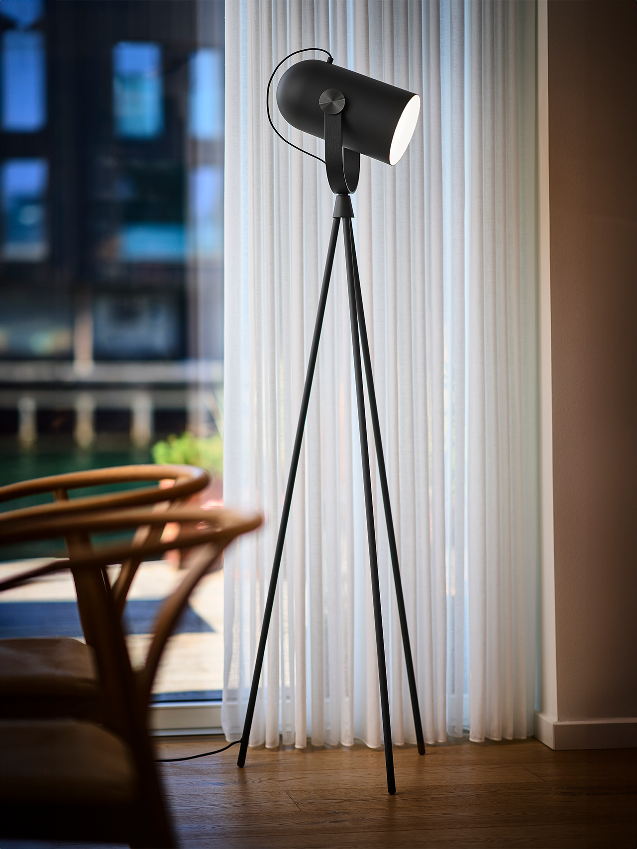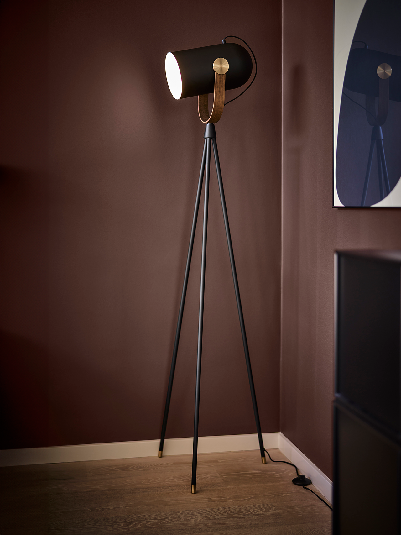 The new Carronade II collection is launched with two models: a High floor lamp and a Small pendant. Both lamps are available in two sleek combinations: black oak/black and smoked oak/brass. These new designs carry the same visual expression as the original Carronade, but with a simpler and lighter material construction that offers a more modern and minimalist look. In particular, the black oak/black variant highlights this modern interpretation of the iconic design.