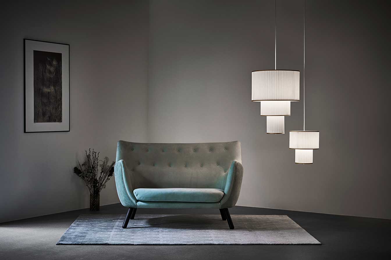 “The magic of Le Klint is often transforming a flat sheet of paper into a variety of organic shapes. With Plivello, I wanted to do something else. I thought it could be exciting to add a more flamboyant style to the design by splitting the lampshade into several levels. The light spreads wonderfully and it still reminds you of chandeliers from the past”,