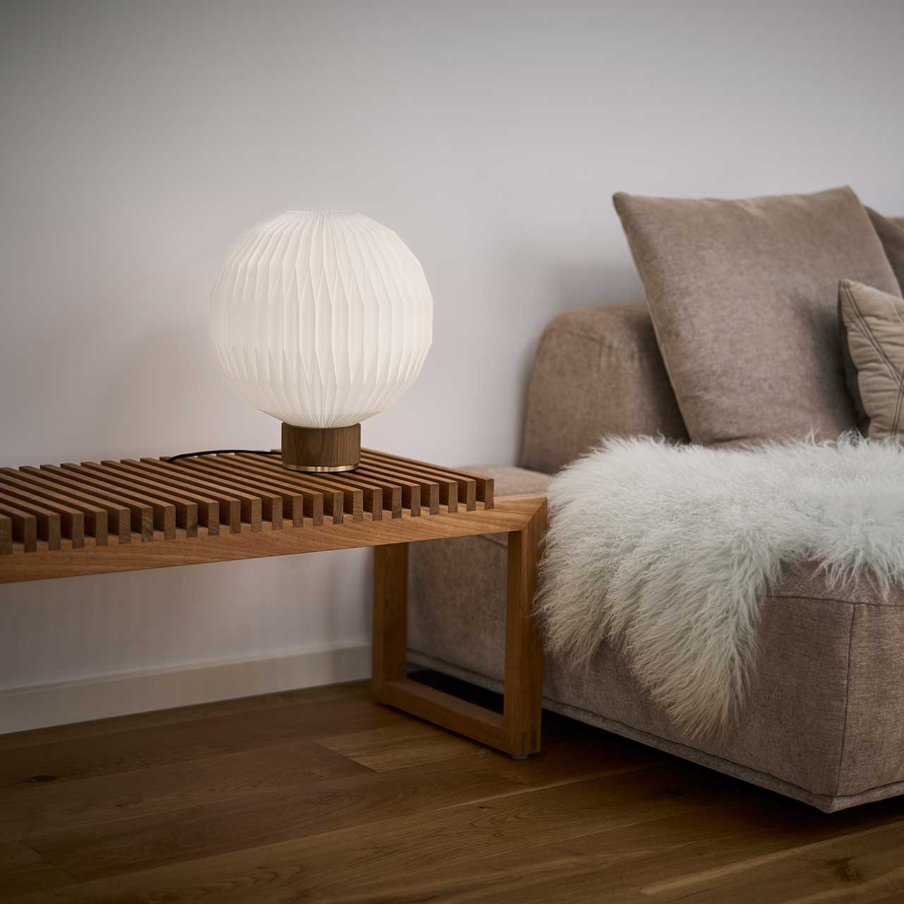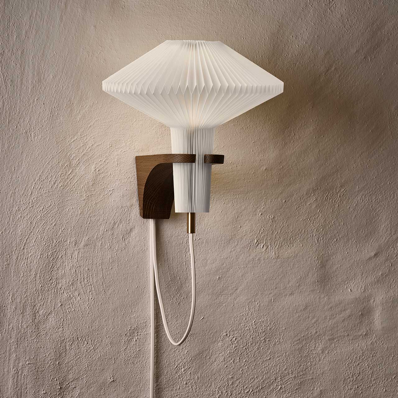 The Mushroom was designed by Vilhelm Wohlert in 1957 in connection with Nobel laureate and physicist Niels Bohr's honorary residence, in Copenhagen. The lamp was re-launched in 2019 and has since been one of our most popular wall lamps. It's characteristic shape and hand-pleated lampshade, with its mushroom shape similarity, contributed to the lamp’s name. In addition to smoked oak, The Mushroom is also available in light oak