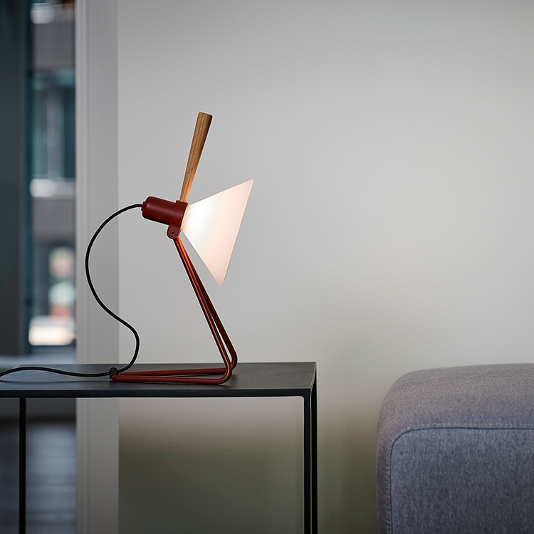 The new lamp has a beautiful historical reference to Kaare Klint's classic Kip lamp, model 306, as Spot can also be used as both a table and wall lamp.