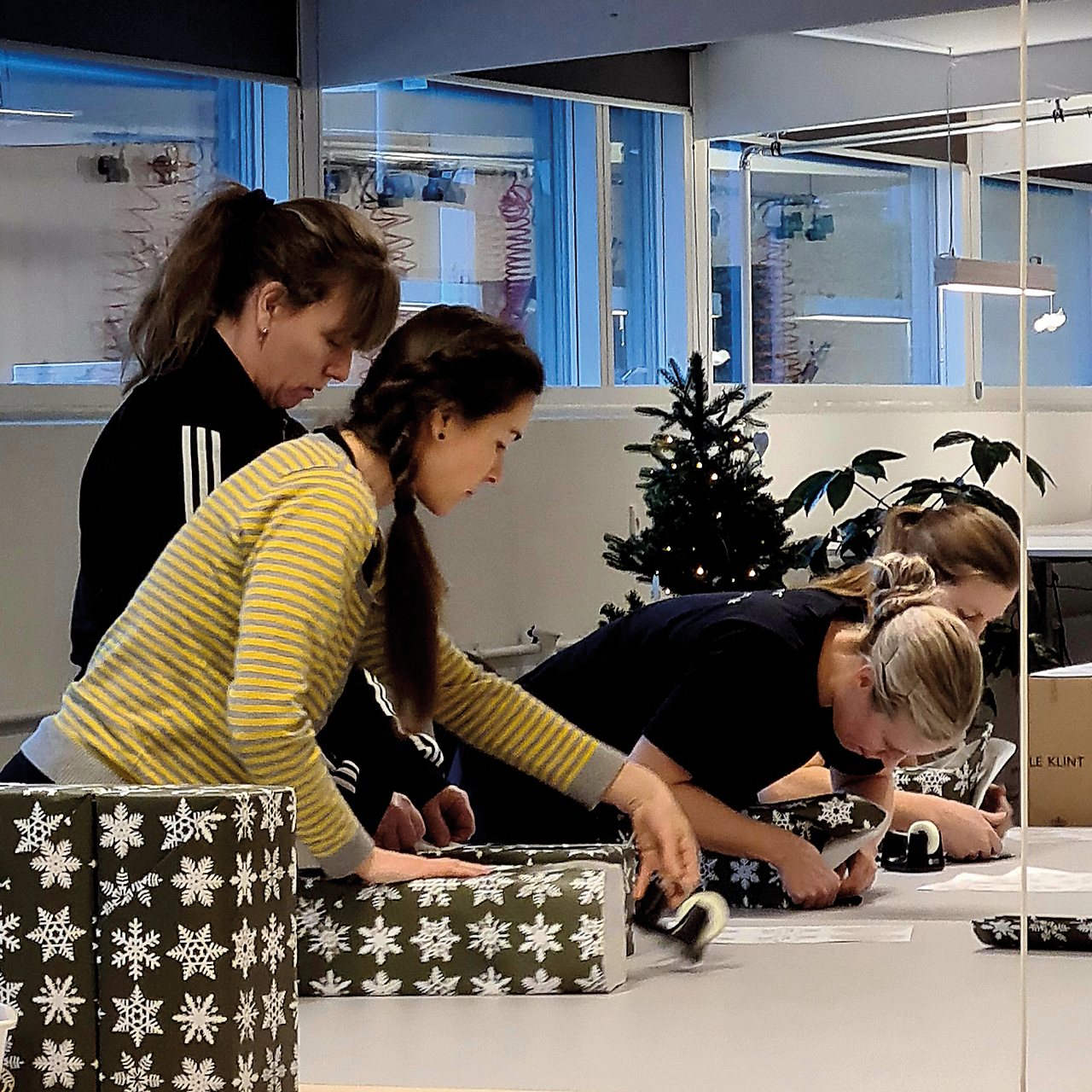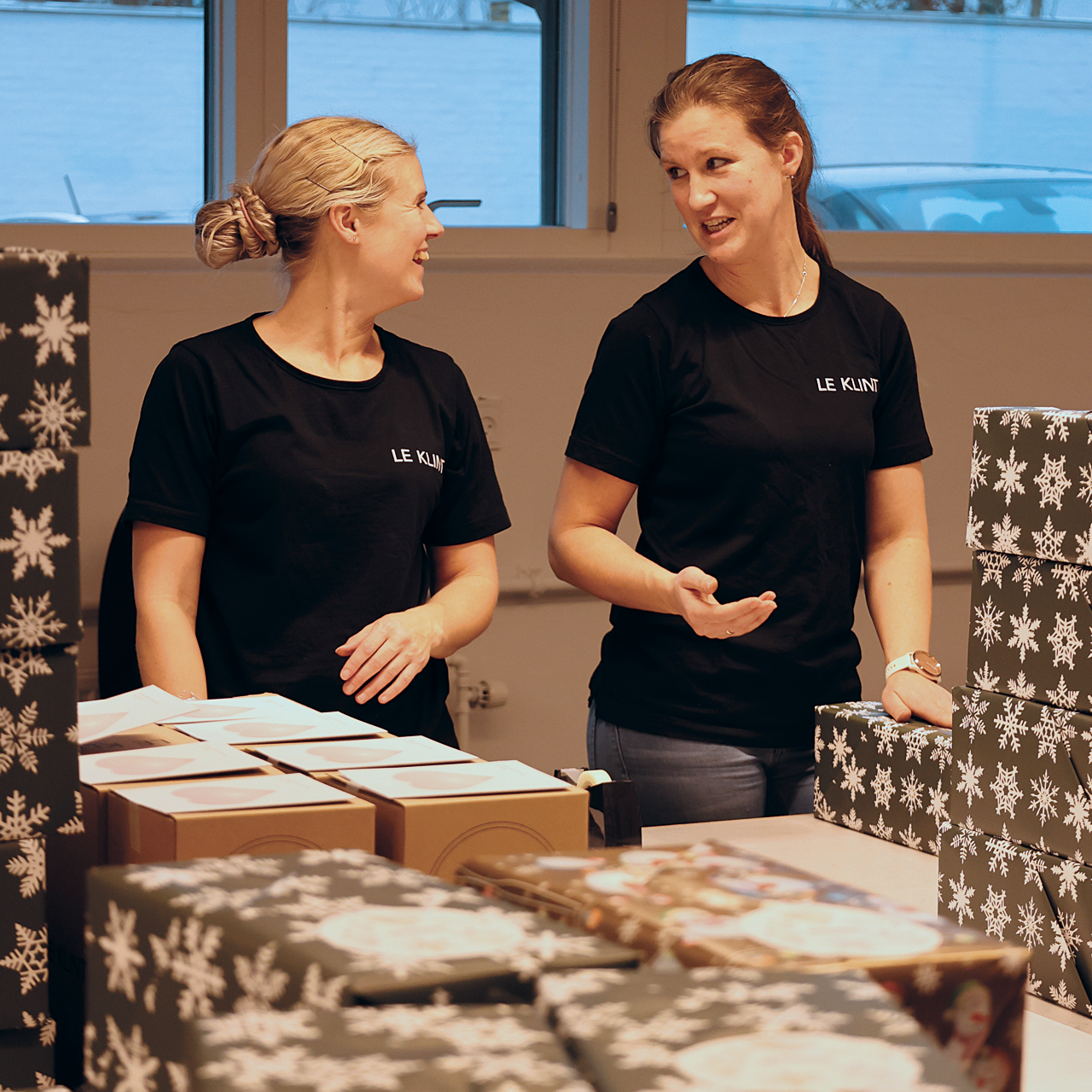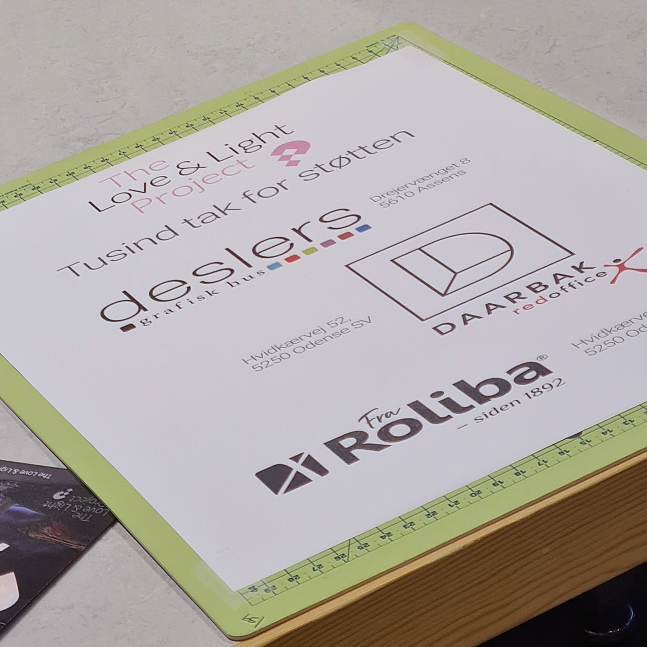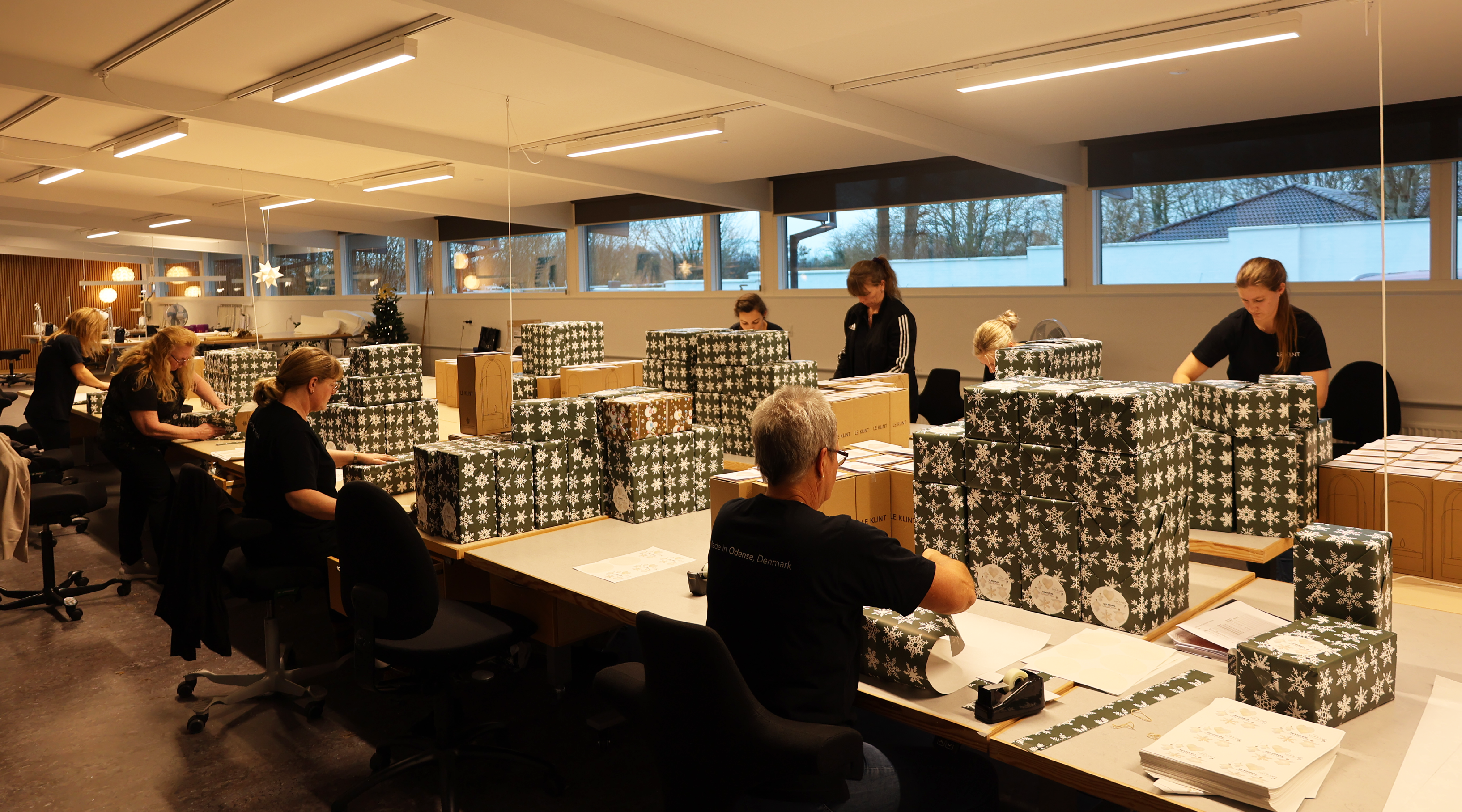 Deslers Grafiske Hus, Daarbak Redoffice Odense, and Roliba, who supported with printing Christmas cards, wrapping paper, and ribbons for the many gifts.