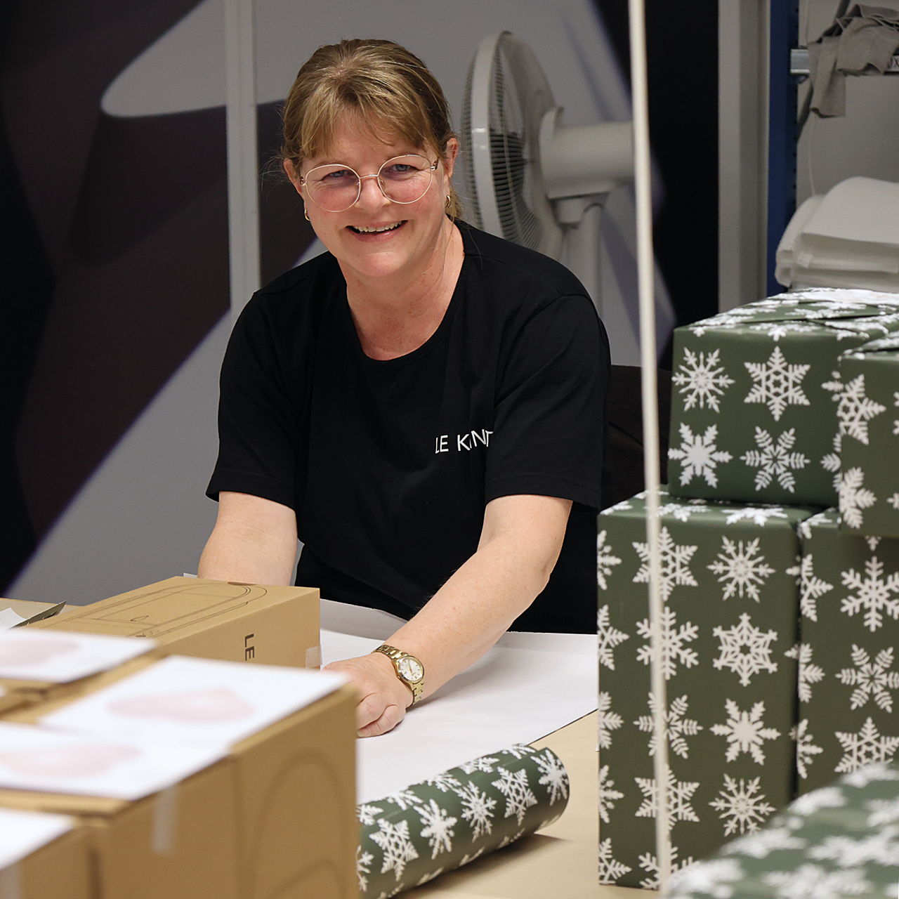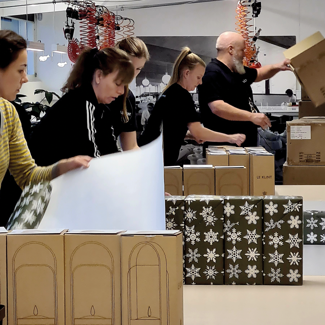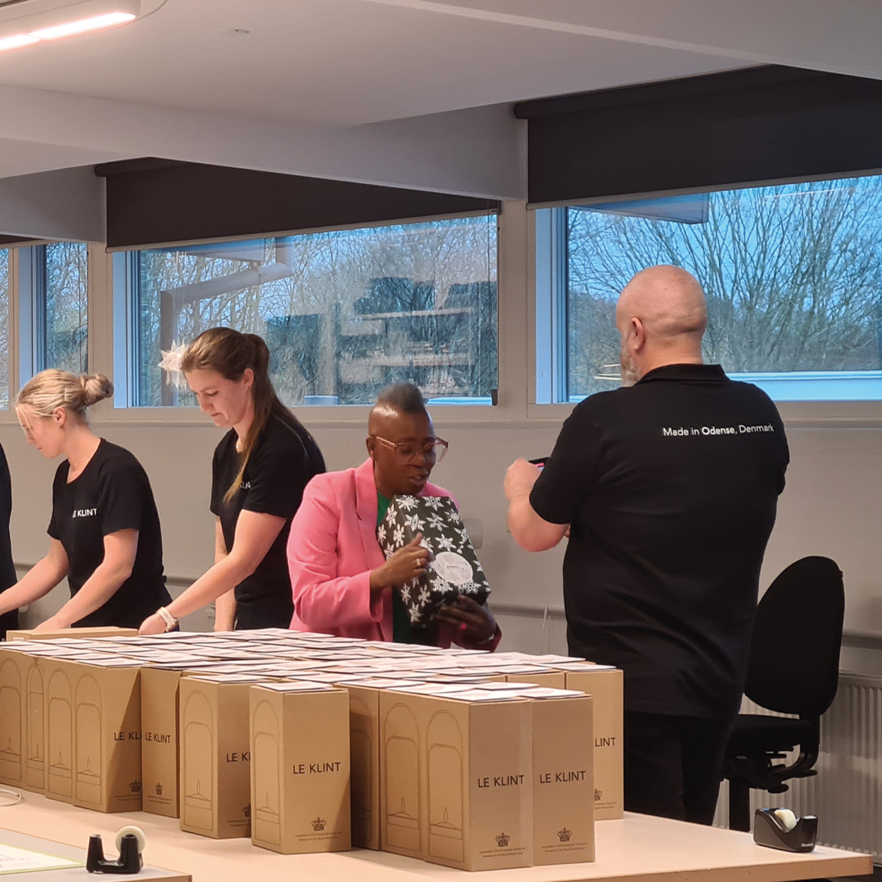 Le Klint’s pleating technicians, administration and workshop employees devoted their time to prepare, gift wrap and transport 450 Candlelight tablelamps to both hospitals on Christmas Eve.