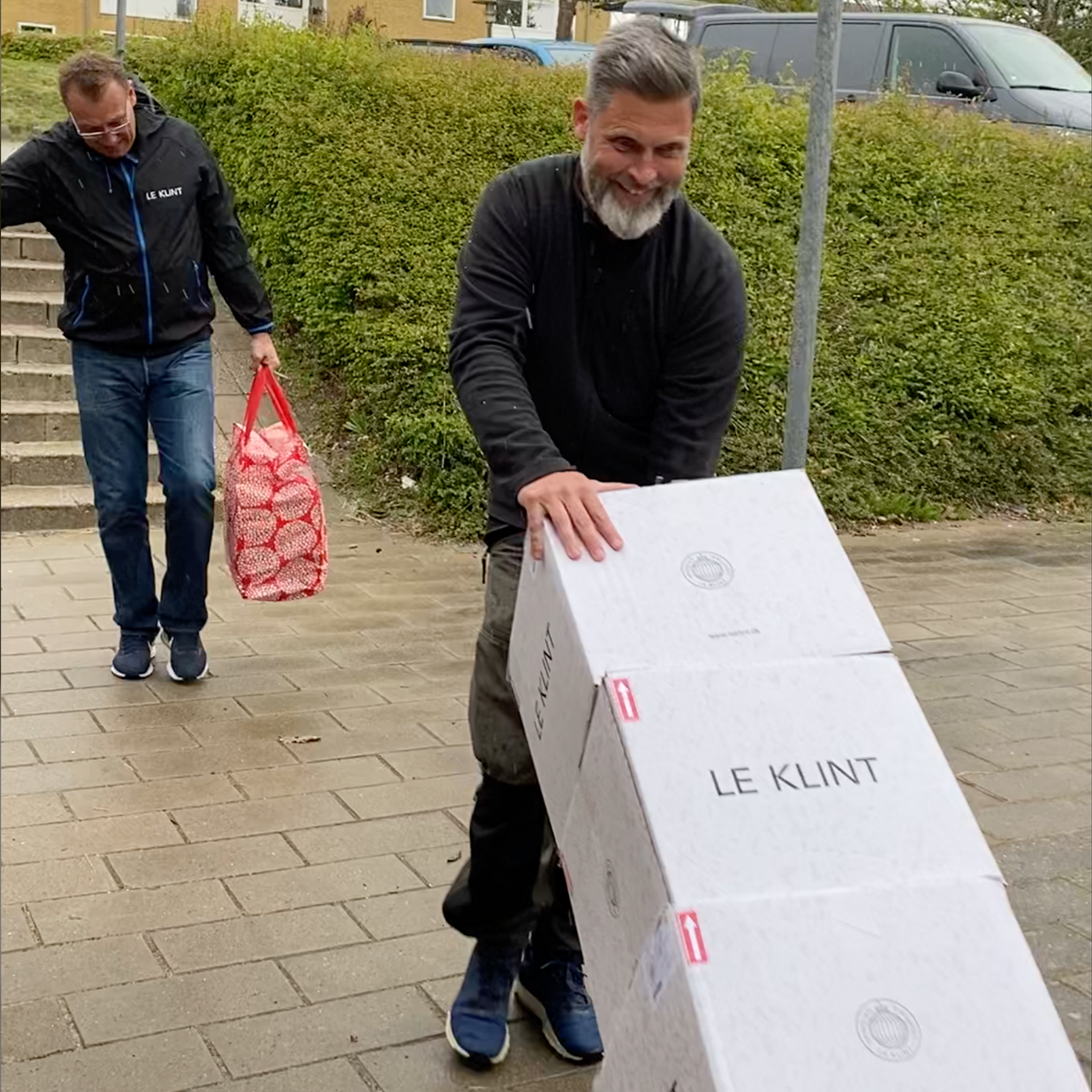 So… I decided to take a trip around the offices of Le Klint sacrificed my lunch break, hijacked one of the company’s vans, grabbed two of our sales staff Thomas and Michael, as volunteers for a couple of hours and off we went on a sustainable recycling mission that to our surprise, on arrival, were three kinder-gardens.